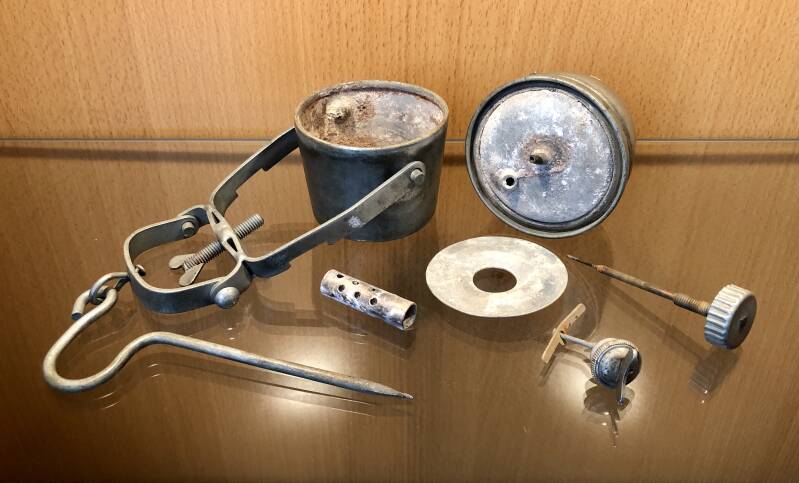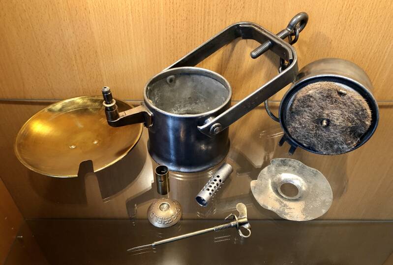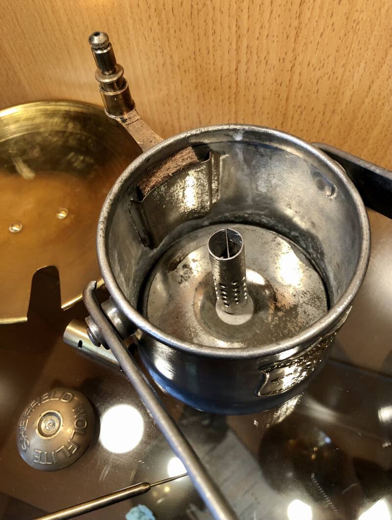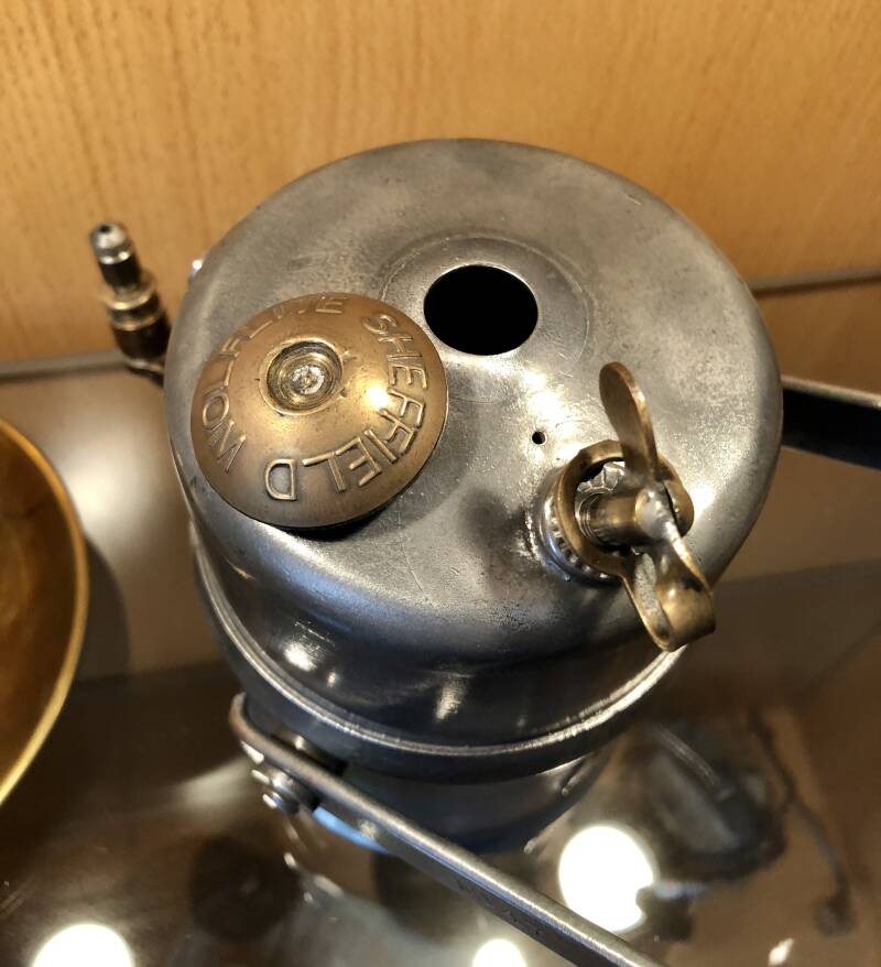 Top Burner and Brass Name Tag on the Carbide Canister.