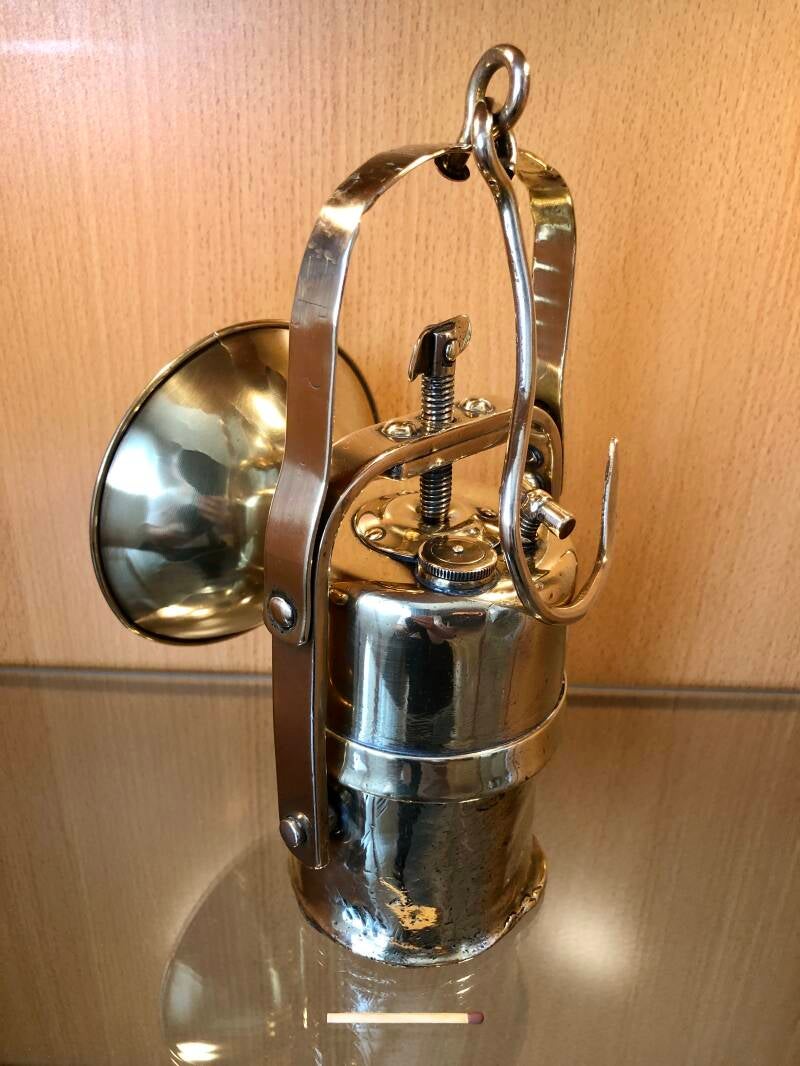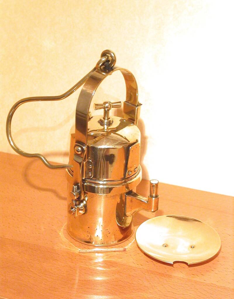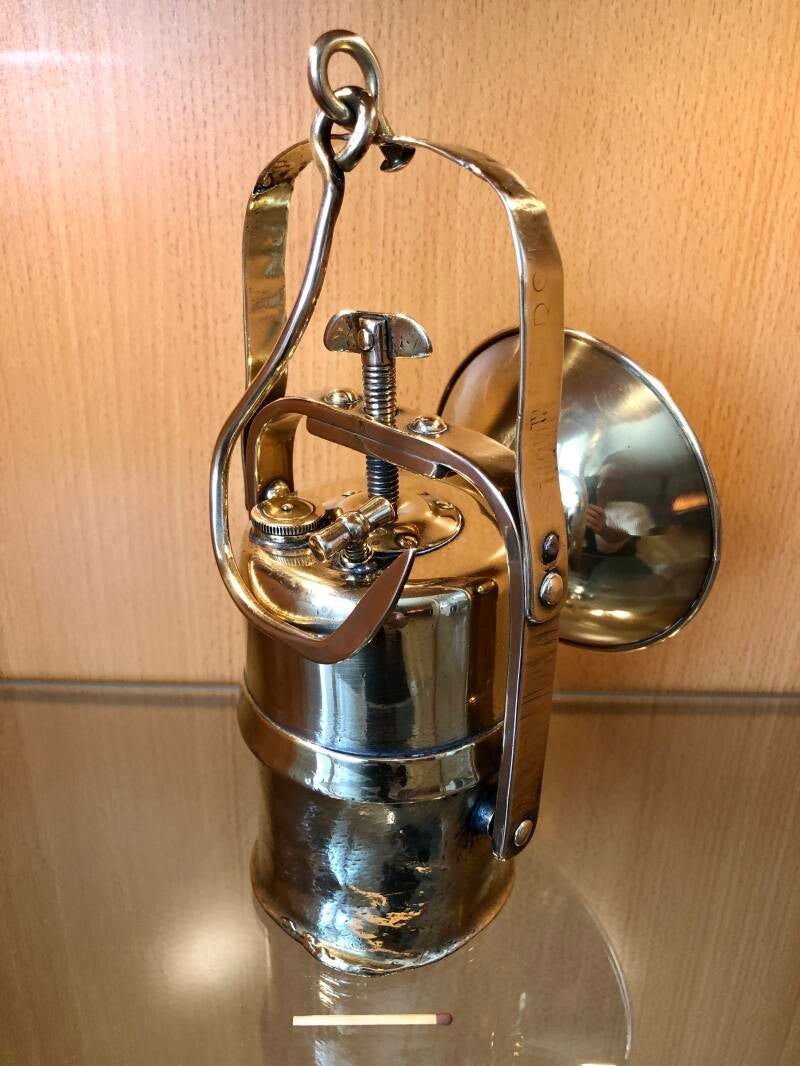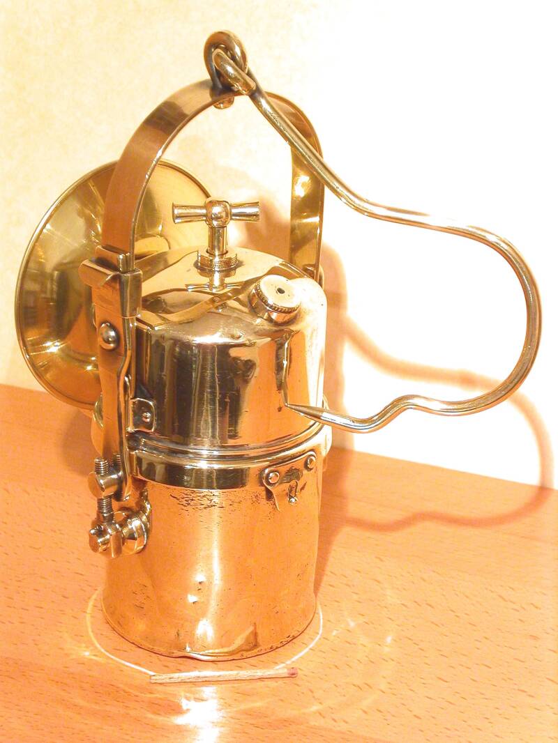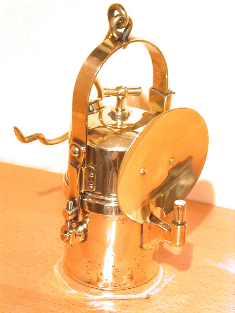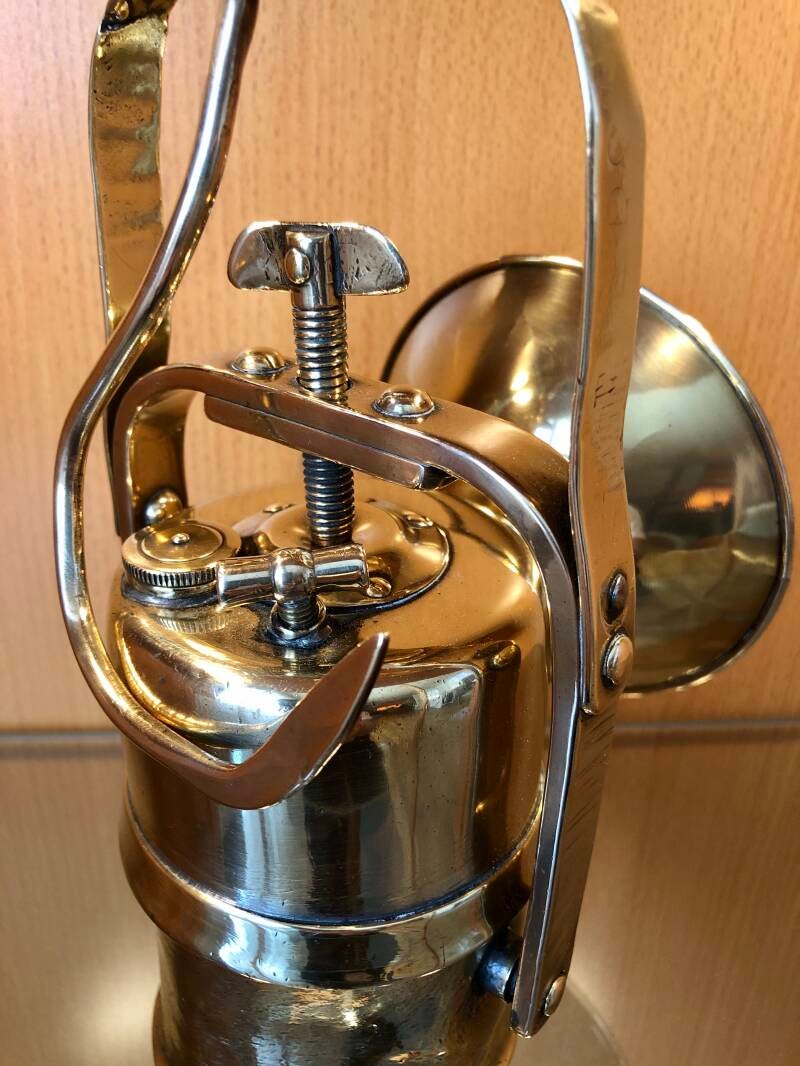 Brass Carbide Lamp with an Extremely Sophisticated Engineered Adjustable Handheld Closure System.