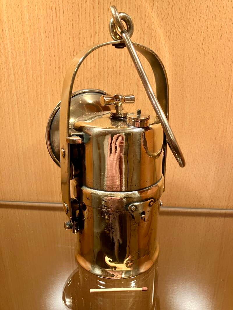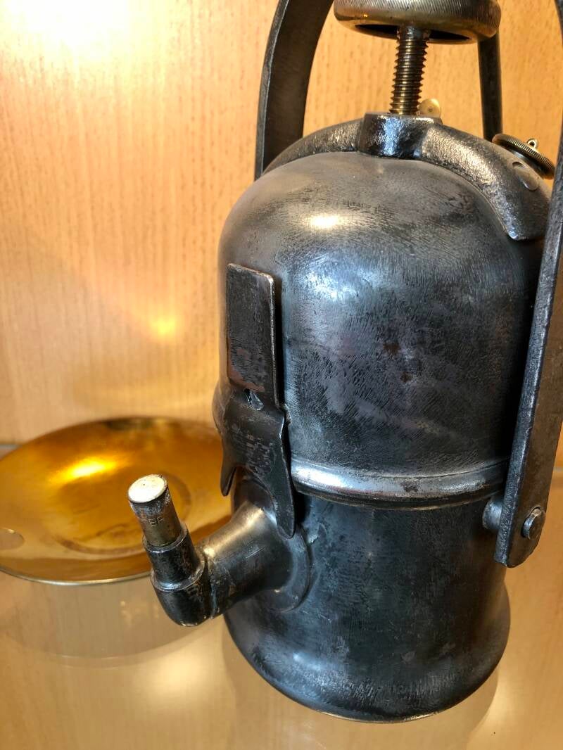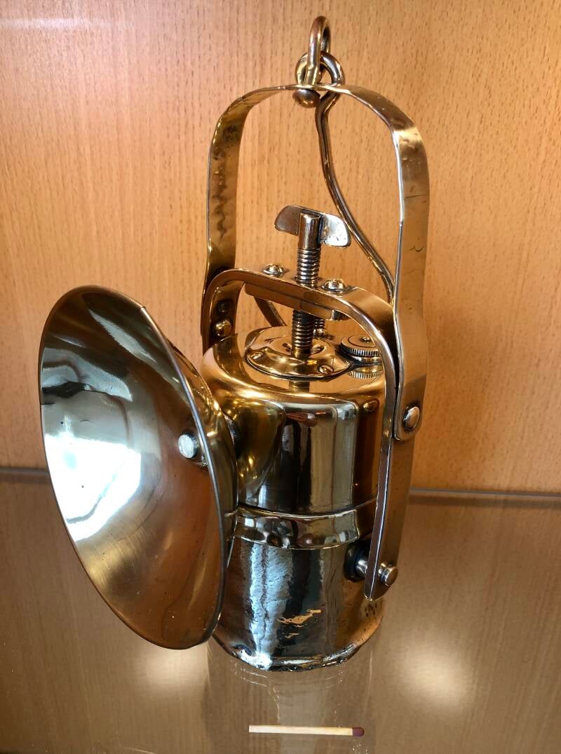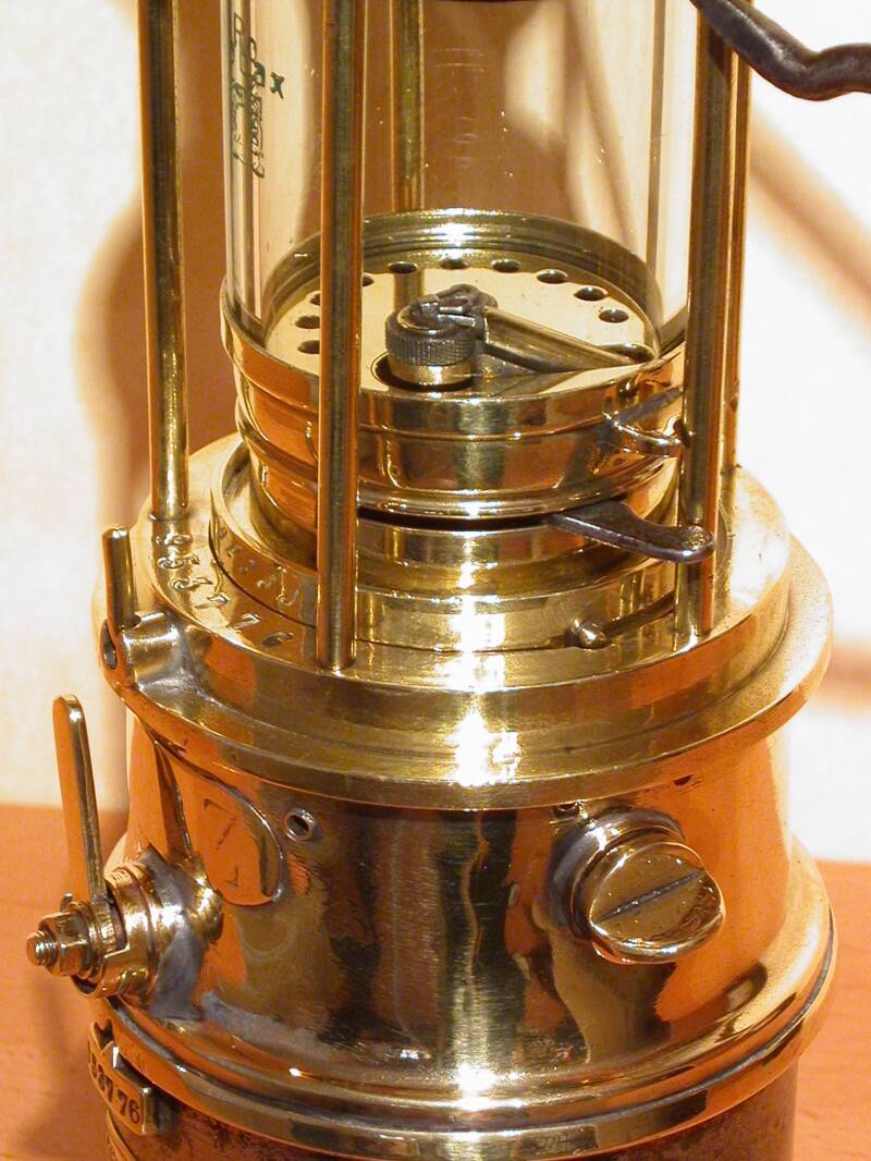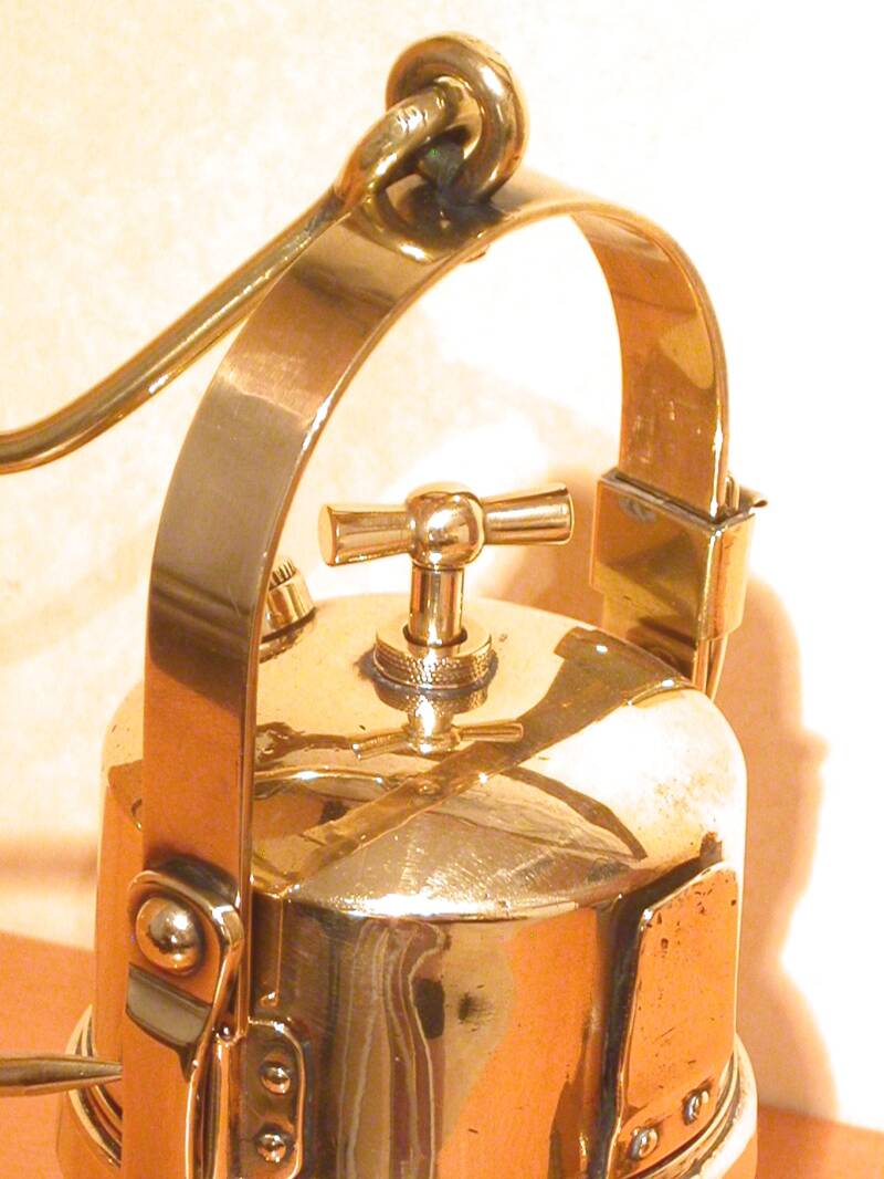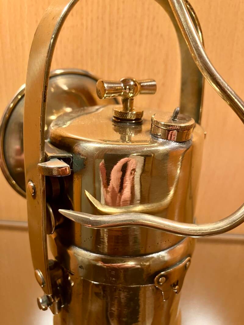 Brass Carbide Lamp with an Extremely Sophisticated Engineered Adjustable Handheld Closure System.