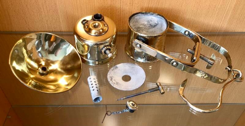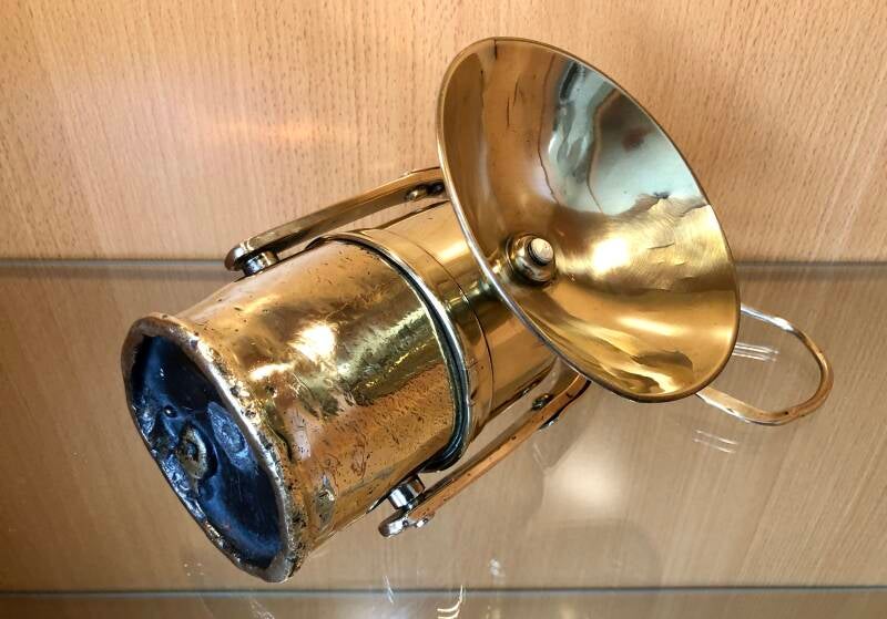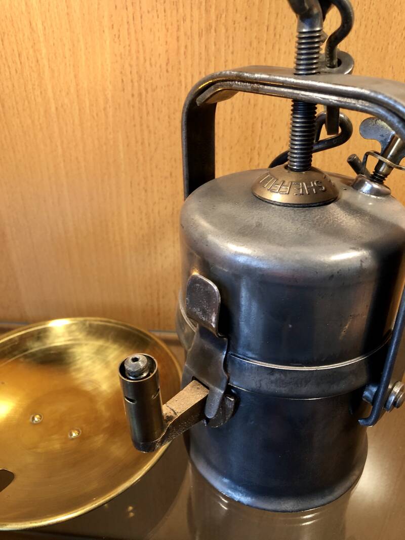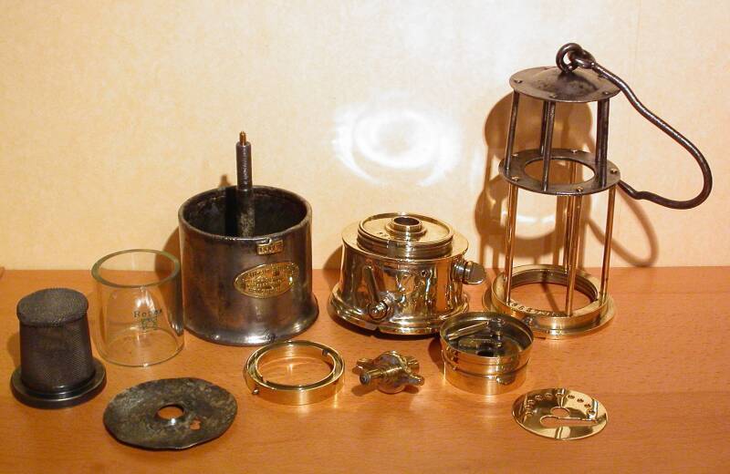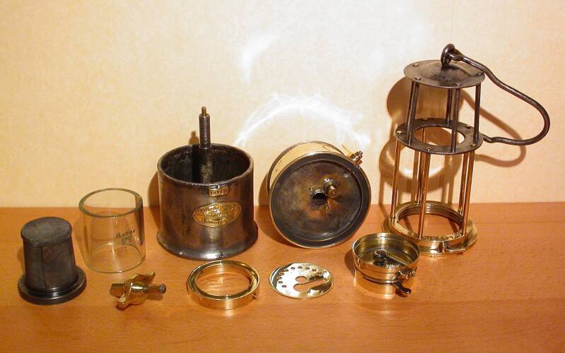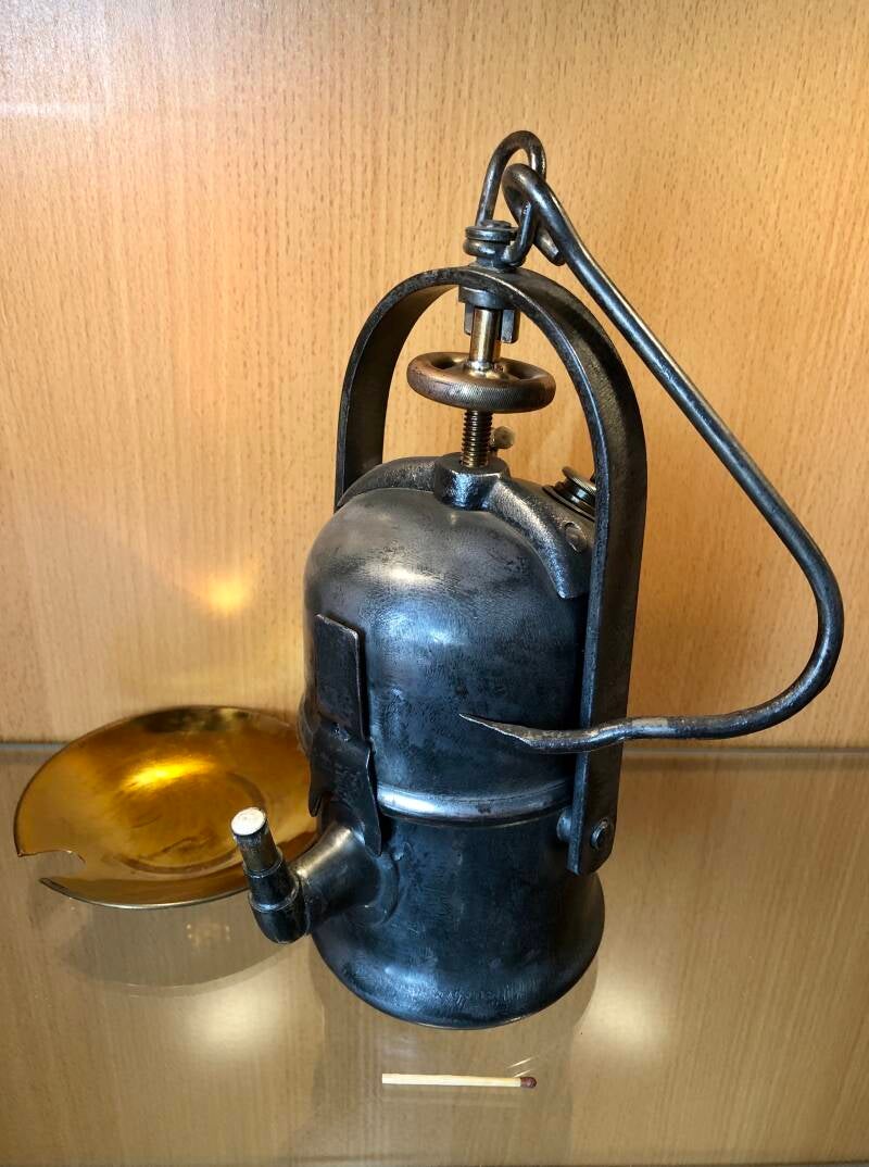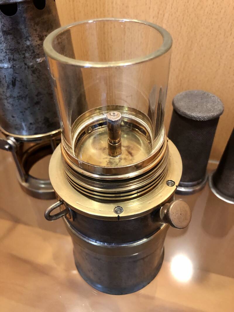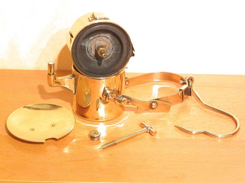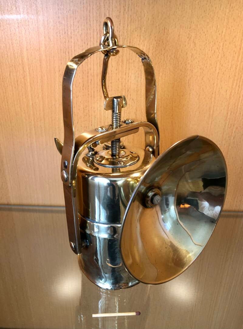 Brass Carbide Lamp with an Extremely Sophisticated Engineered Adjustable Handheld Closure System.
