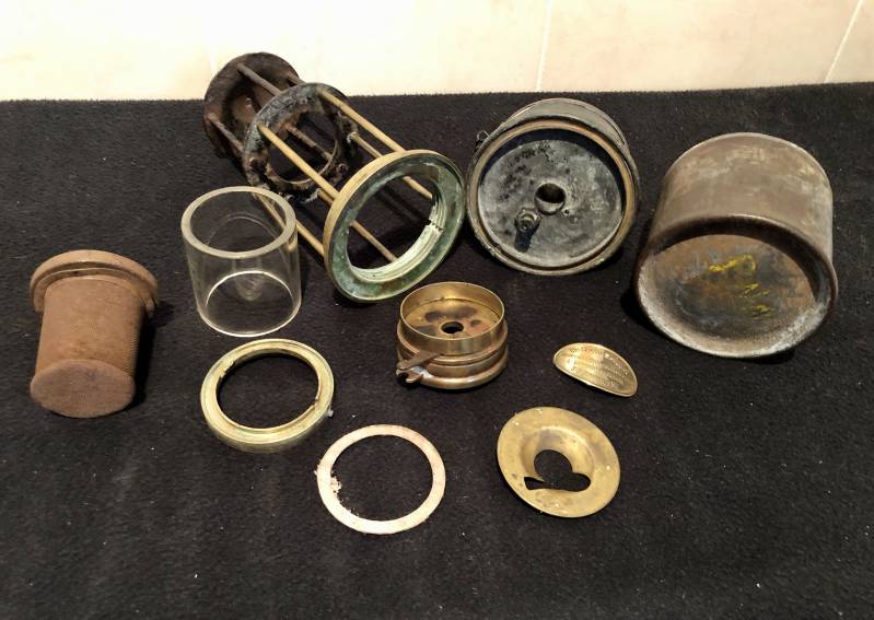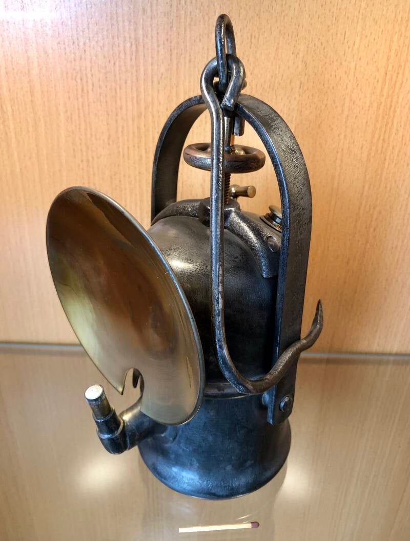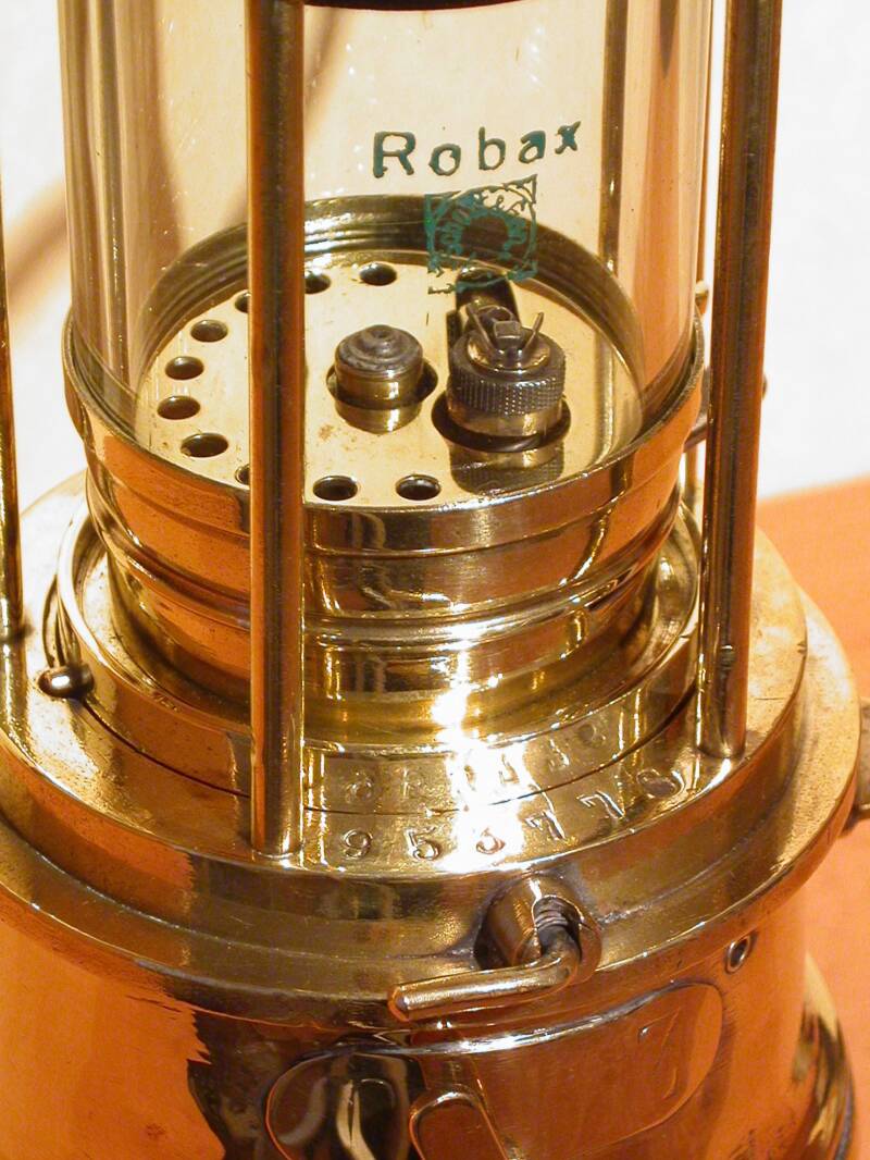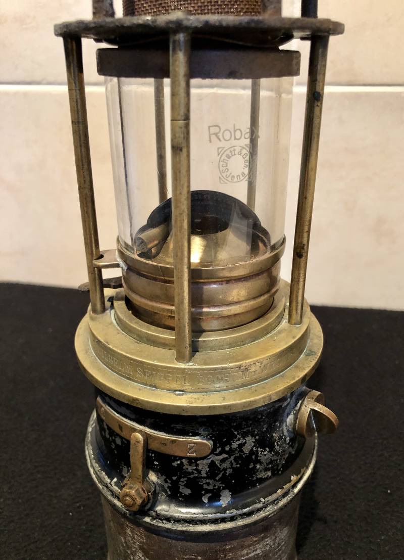 Name Tag and Robax Glas is Old and Original. Only Bottom Part was Missing and Similar Size Carbide Cannister has been Included to Repair the Lamp.