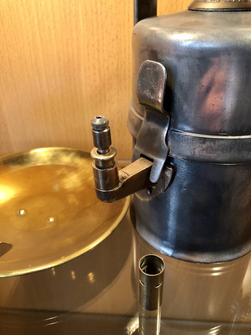Brass Carbide Lamp with an Extremely Sophisticated Engineered Adjustable Closure Mechanism.