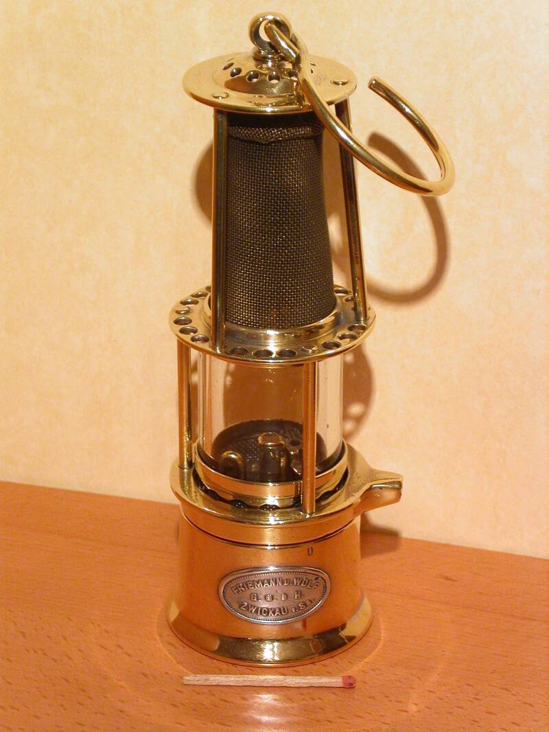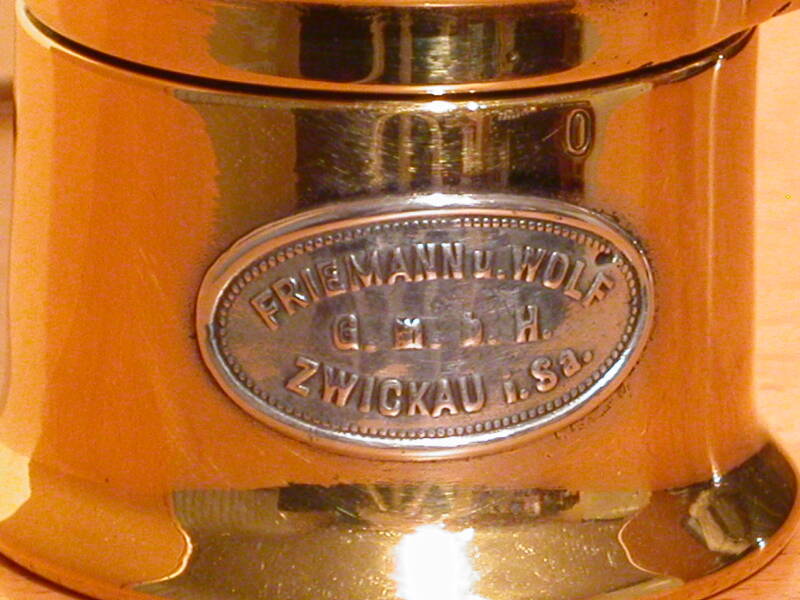Old Brass Inspectors Lamp with so Called Special ''Reibstreifenzünder'' Ignitor and Pin Lock System. Superb Condition with Name Tag. Top and Bottom Part are Number Identical.